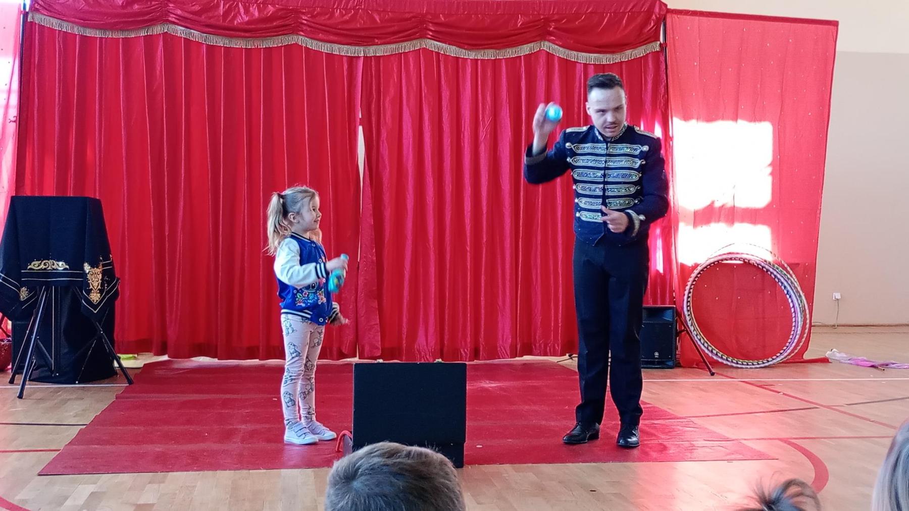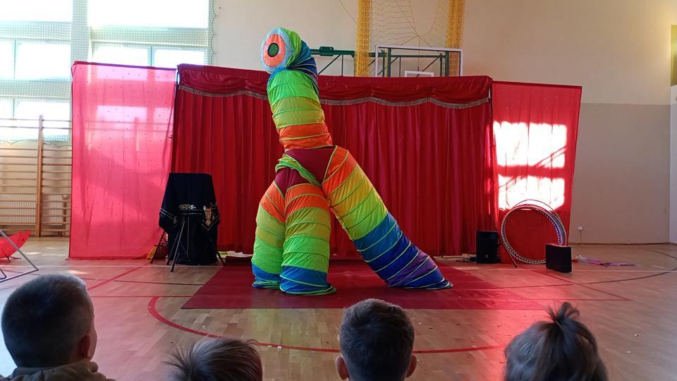Niesamowity żywy smok, człowiek sprężyna czy szalony Minionek to niejedyne atrakcje, które czekały na nasze przedszkolaki podczas programu cyrkowego zaprezentowanego przez artystów z Agencji Artystycznej Tornado. Podczas pokazu dzieci mogły przenieść się do magicznego świata bajki i cyrku, podziwiać pokaz iluzji oraz brać udział w różnych zabawach. Najwięcej emocji wzbudził jednak wielki pluszowy miś, z którym dzieci mogły zrobić sobie pamiątkowe zdjęcie. Wszyscy bawili się wspaniale, a przedstawienie na pewno na długo pozostanie w pamięci najmłodszych.