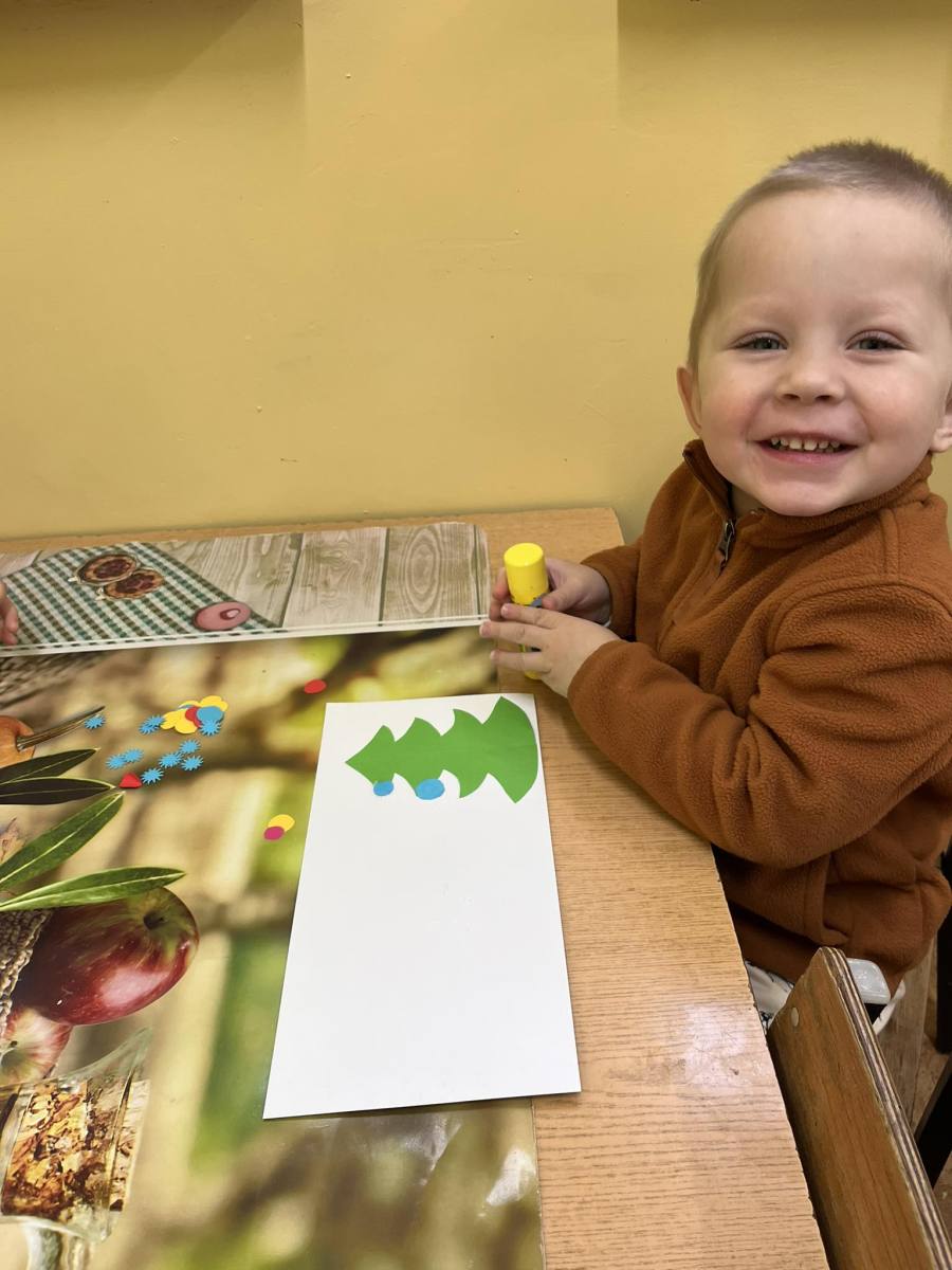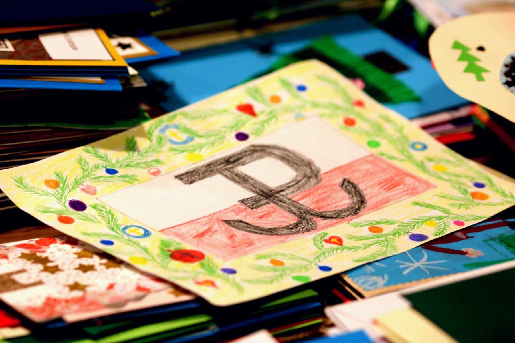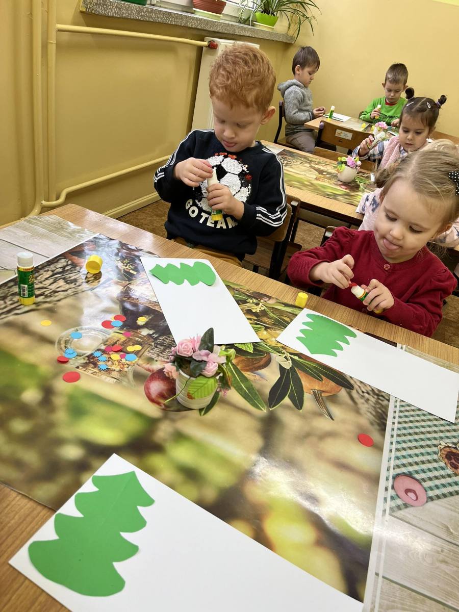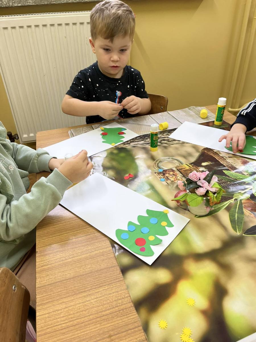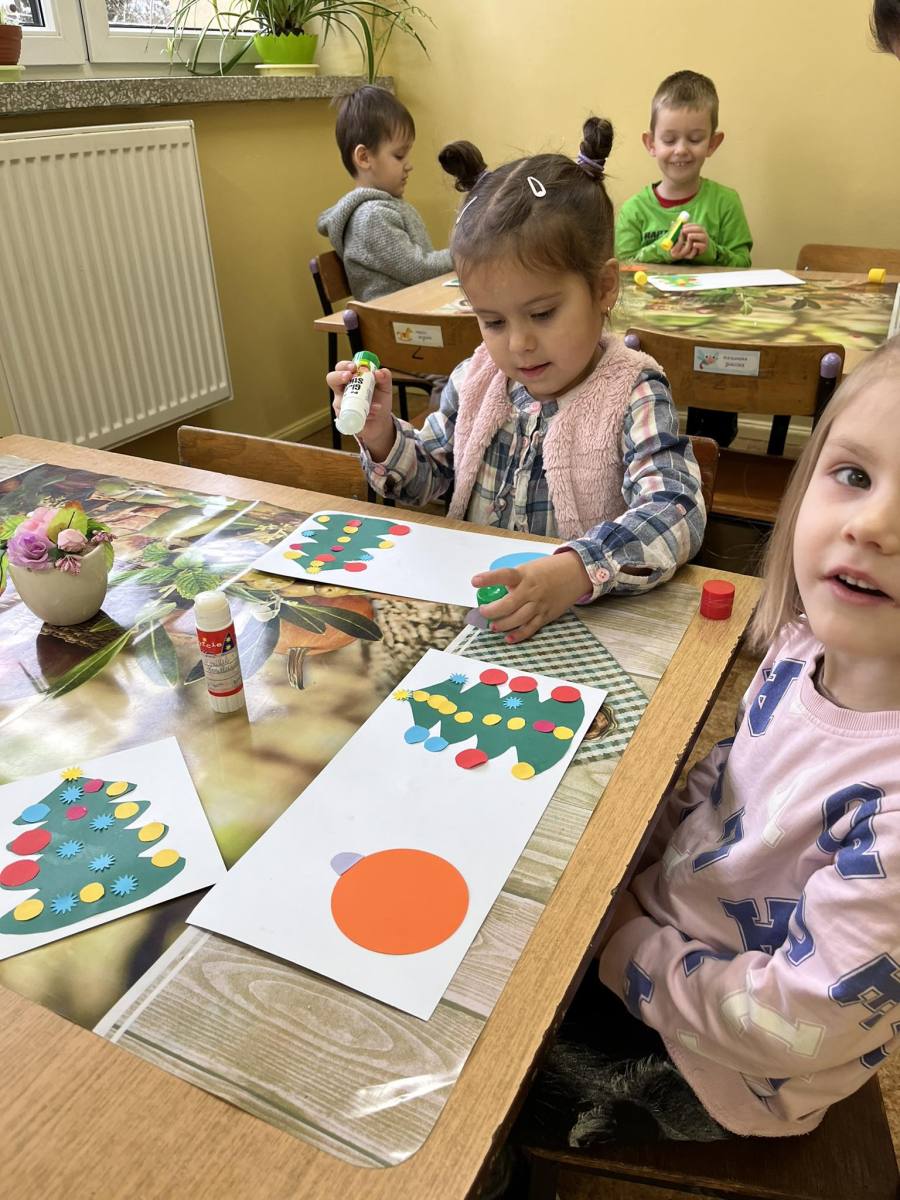 Przedszkolaki wykonują kartki świąteczne dla kombatantów II wojny światowej.