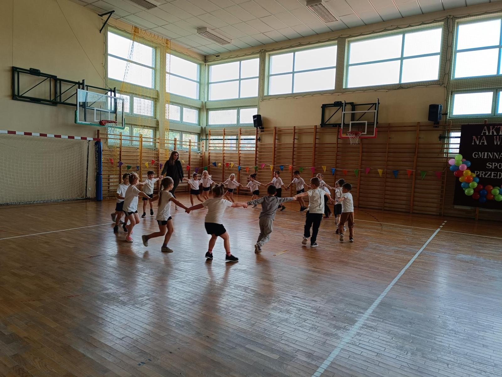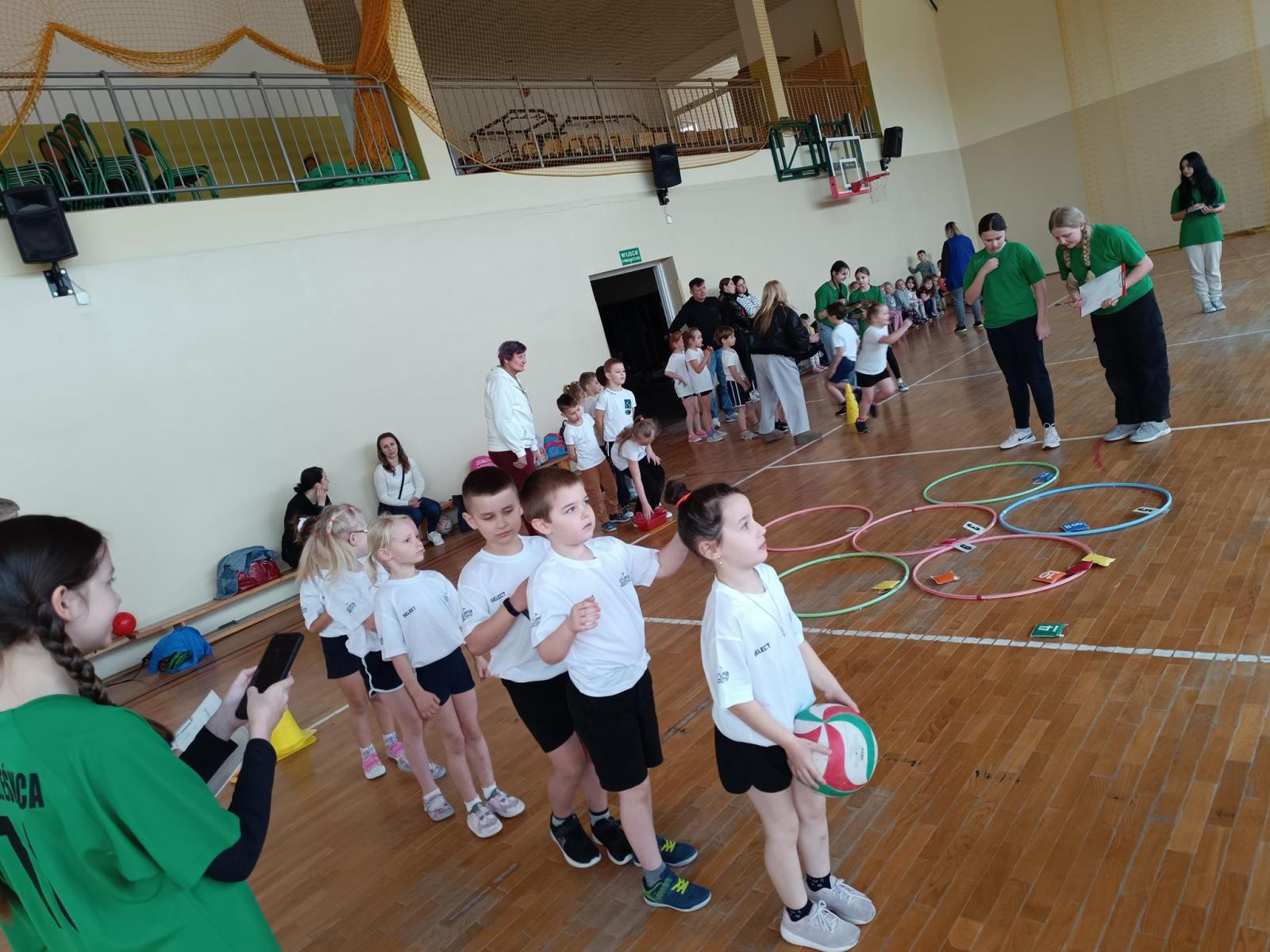 Przedszkolaki postanowiły przywitać wiosnę w sportowym stylu. 21 marca w naszej szkole odbyła się olimpiada sportowa, na którą zaproszone zostały przedszkola z całej gminy. Sześciolatki zmierzyły się podczas wesołych konkurencji. Zadowolenie i radość malowały się na twarzach uczestników. W przerwie Rada Rodziców oraz mamy, których dzieci uczęszczają do zerówki, zaprosiły sportowców na zdrowy poczęstunek. Każdy uczestnik otrzymał medal oraz drobny upominek, a zwycięska drużyna otrzymała puchar.