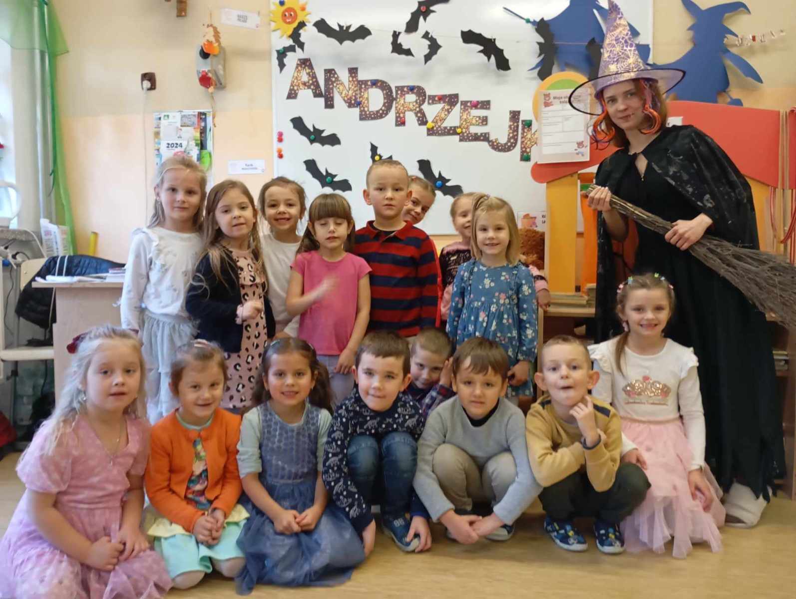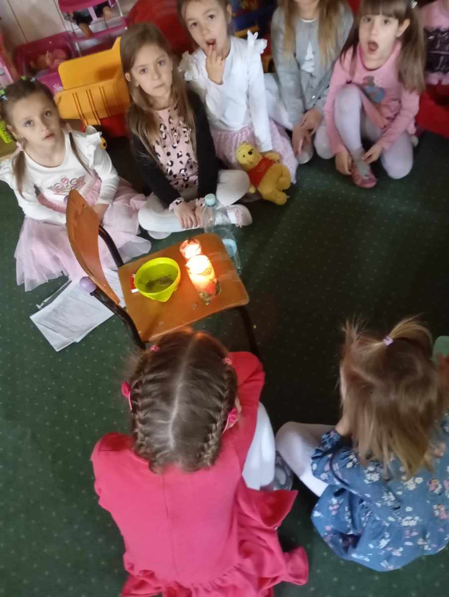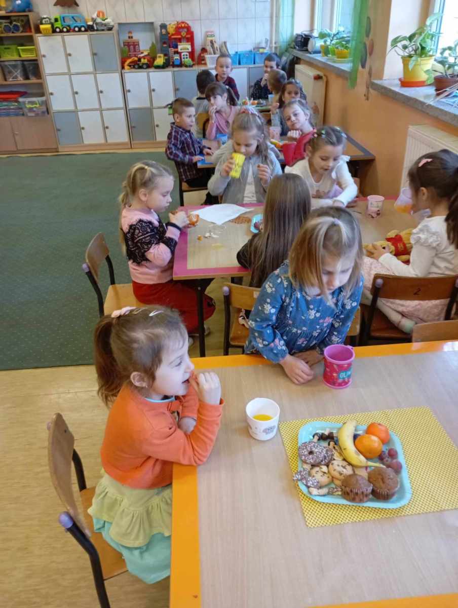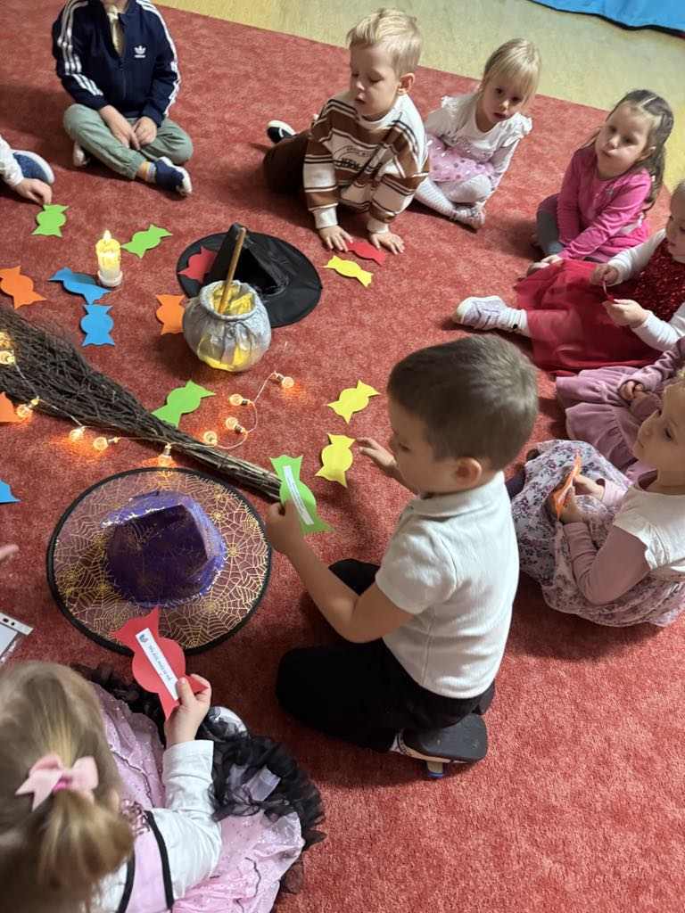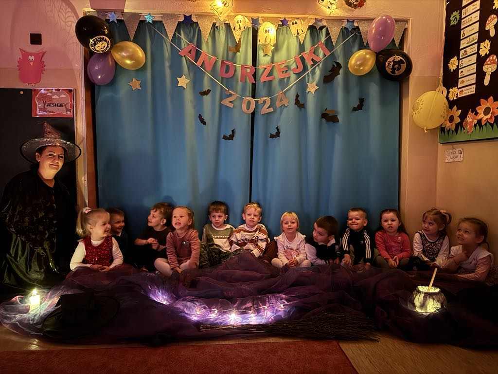 i wróżb, w których dzieci mogły poznać swoją bliższą i dalszą przyszłość. Nie zabrakło ustawiania bucików, przekłuwania balonów z wróżbami, wróżenia za pomocą wirującej butelki, lania wosku itp. Wróżby przeplatane były tańcami oraz zabawami przy muzyce. Na zakończenie przedszkolaki raczyły się słodkim poczęstunkiem. Zabawa była wspaniała, dzieci wróciły do domu w doskonałych humorach.