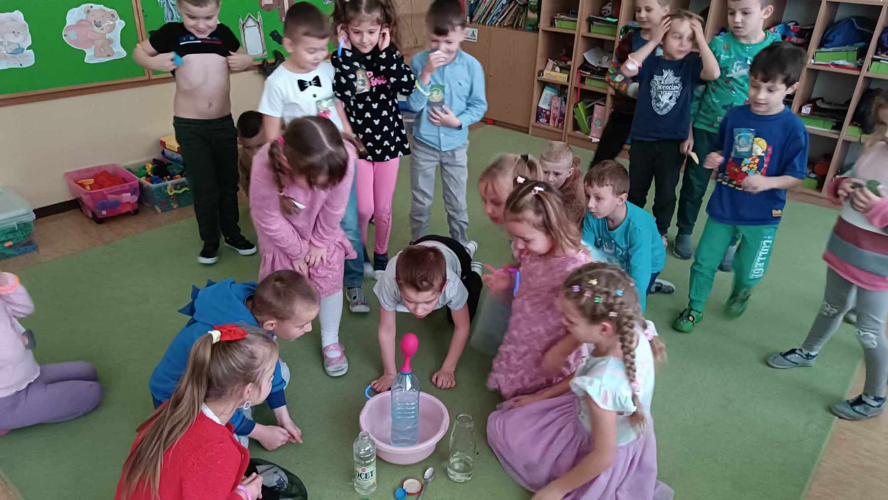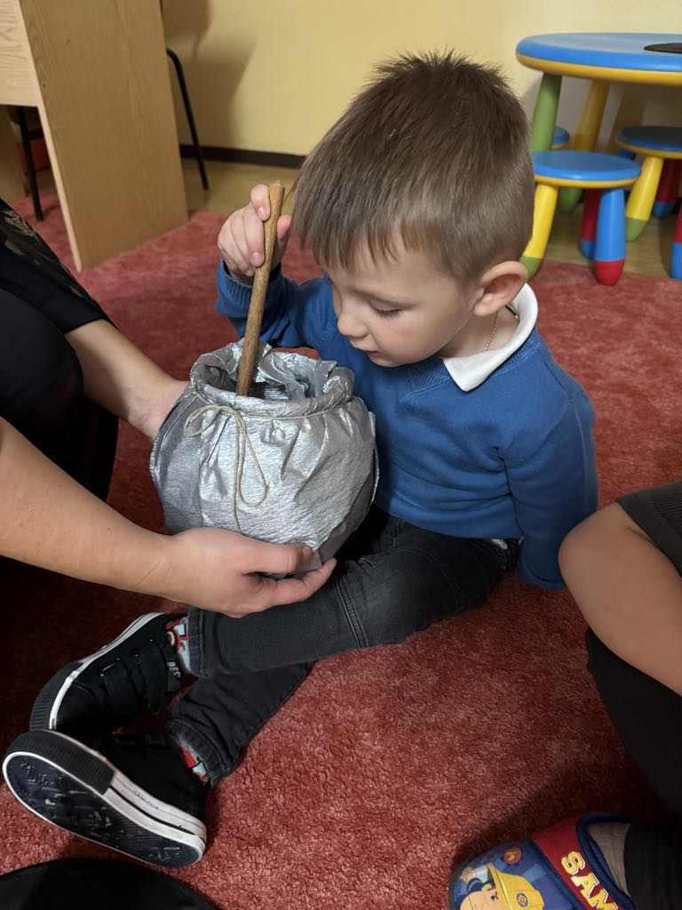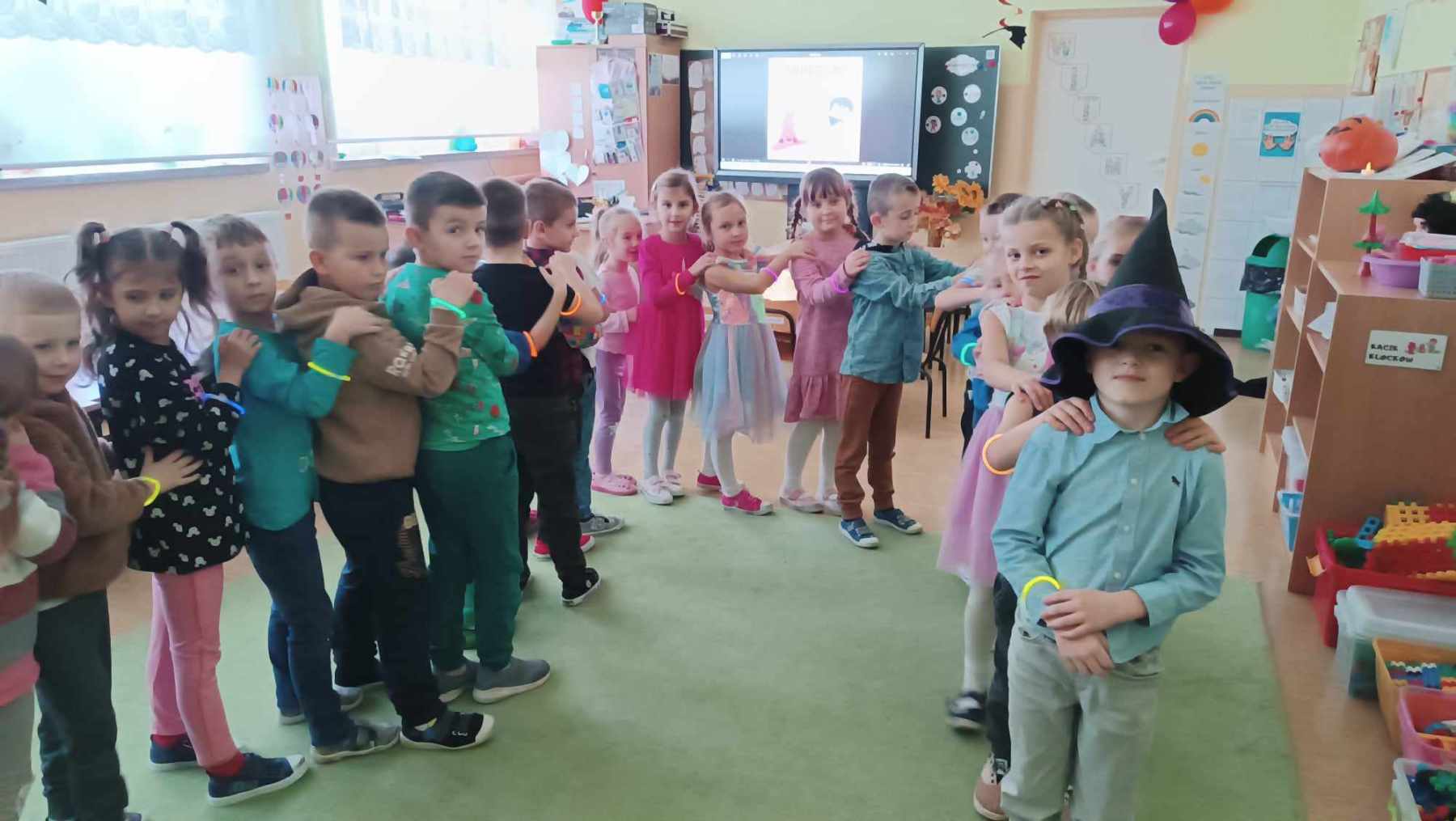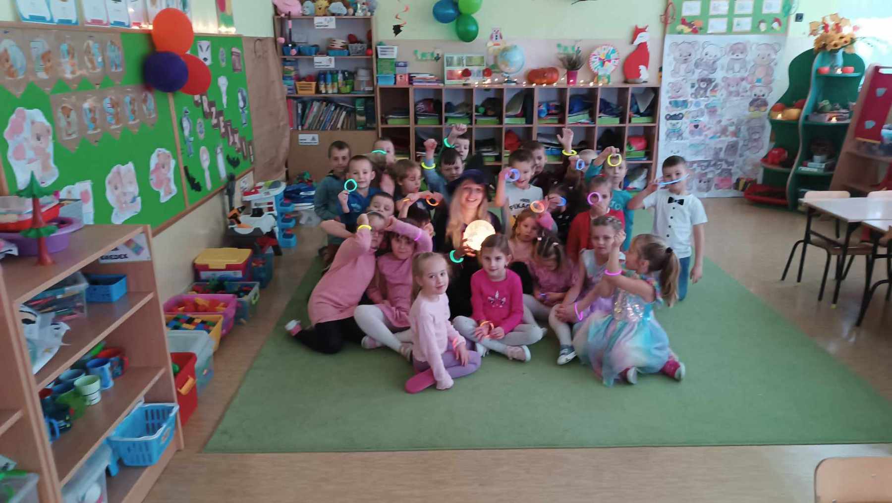 i wróżb, w których dzieci mogły poznać swoją bliższą i dalszą przyszłość. Nie zabrakło ustawiania bucików, przekłuwania balonów z wróżbami, wróżenia za pomocą wirującej butelki, lania wosku itp. Wróżby przeplatane były tańcami oraz zabawami przy muzyce. Na zakończenie przedszkolaki raczyły się słodkim poczęstunkiem. Zabawa była wspaniała, dzieci wróciły do domu w doskonałych humorach.