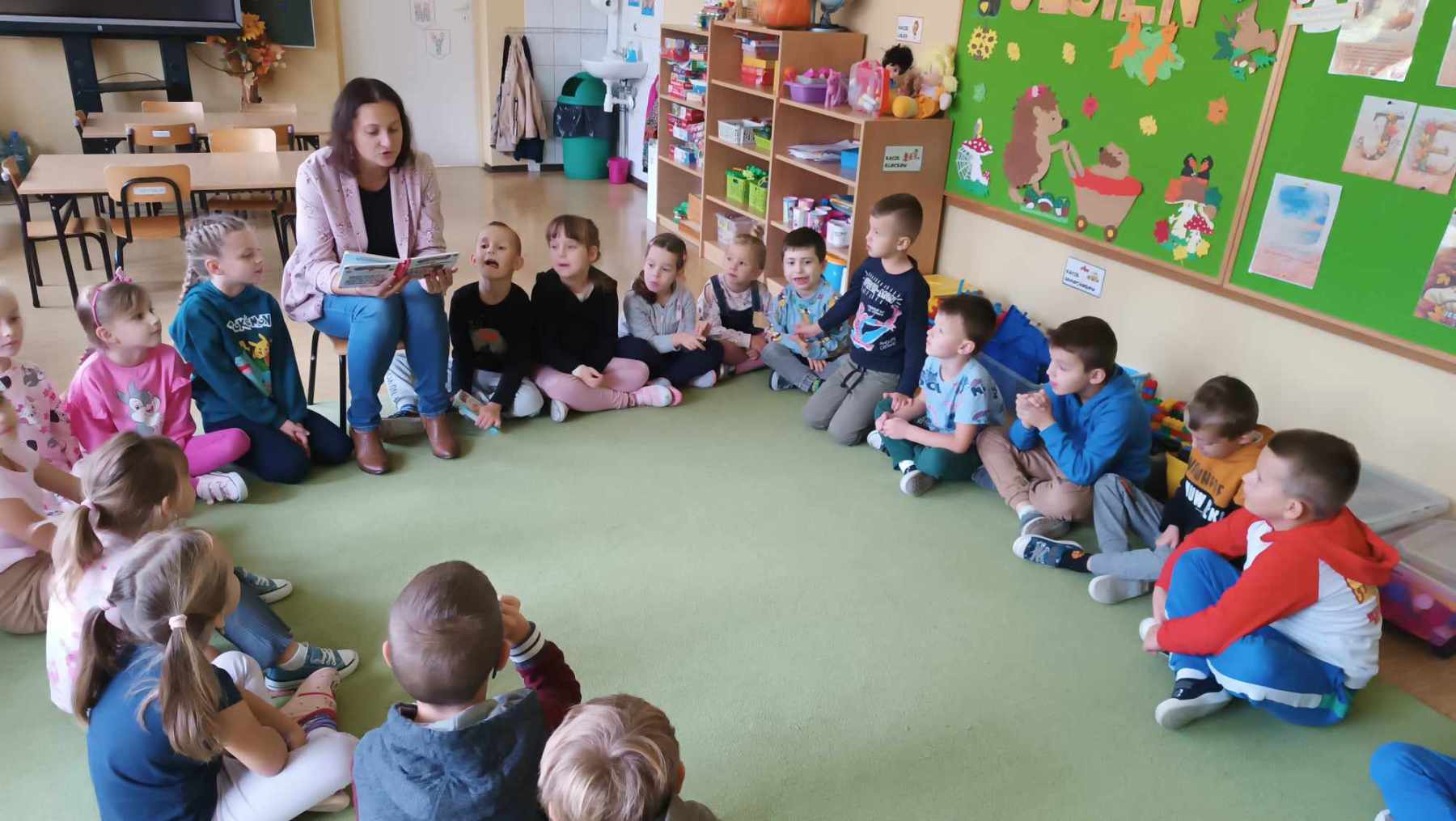 Od początku roku 6-laków odwiedziły dwie mamy, które czytały dzieciom wybrane w domu książki. Przygotowały także zagadki, a także rozmawiały z przedszkolakami na bardzo ważny temat, a mianowicie, dlaczego warto czytać, zwłaszcza przed snem. Miejmy nadzieję, że te rozmowy pozostaną na długo w pamięci naszych Pszczółek, które już czekają na kolejne odwiedziny swoich bliskich na wspólne czytanie.