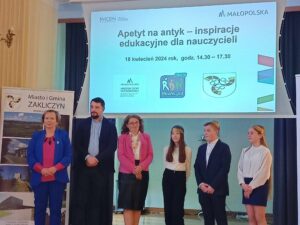 W ostatni czwartek 18 kwietnia 2024 roku przedstawiciele klasy wraz z Panią Dyrektor i nauczycielami wzięli udział w konferencji „Apetyt na antyk – inspiracje edukacyjne dla nauczycieli”, podczas której odebrali nagrodę za zdobycie I miejsca w konkursie na projekt pod wspomnianą powyżej nazwą ANTYCZNE WARIACJE. Organizatorem konferencji i konkursu było Małopolskie Centrum Doskonalenia Nauczycieli (oddział w Tarnowie).