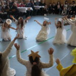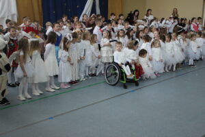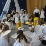 Grupy przedszkolne przygotowały dla gości tradycyjne „Jasełka”. W pięknych strojach wśród dźwięków kolęd i pastorałek zaprezentowały się wspaniale i sprawiły babciom i dziadkom ogromną radość.  Uwagę zgromadzonych przykuły tańce gwiazdek, pastuszków i owieczek. W dalszej części uczniowie klas I-III przedstawili wzruszające wiersze i piosenki okolicznościowe, związane tematycznie z tymże świętem. Utwory pokazały troskę babć i dziadków o swoje wnuczęta oraz to, jak są z nich dumni.