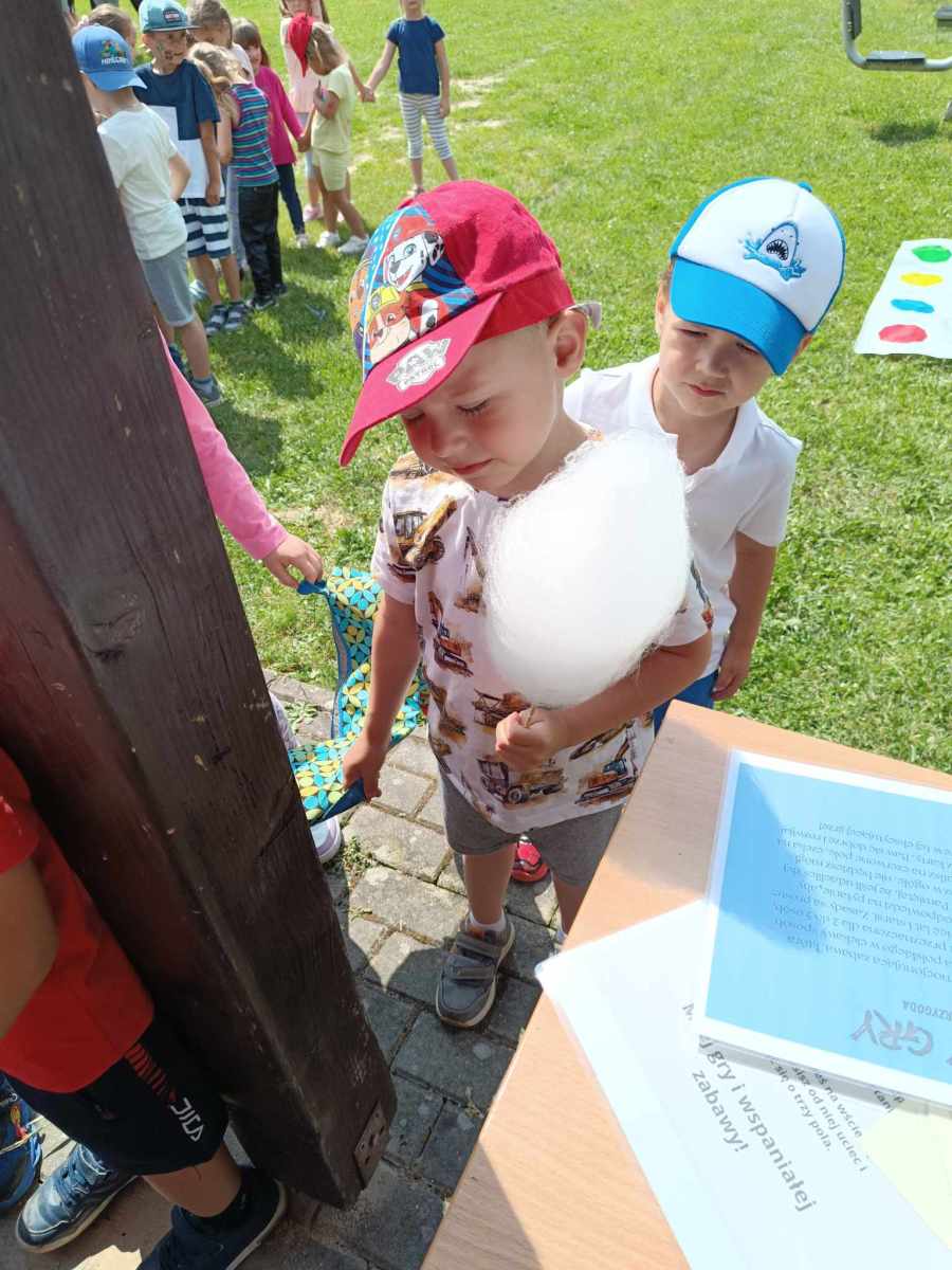 W Naszym Przedszkolu tego dnia również nie zabrakło atrakcji. Były dmuchańce, rozgrywki sportowe, malowanie twarzy, zabawy muzyczno – ruchowe . Później na przedszkolaki czekała wata cukrowa , popcorn  oraz pyszne lody.