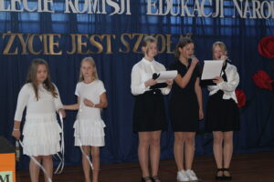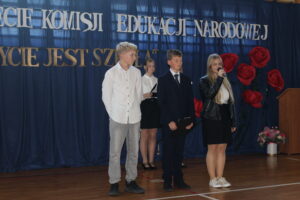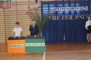 13 października 2023 roku odbyła się w naszej szkole uroczysta akademia z okazji Dnia Nauczyciela . W tym roku miała szczególny wymiar, ponieważ w tym dniu przypadła również 250 rocznica powołania Komisji Edukacji Narodowej- pierwszej w Europie państwowej władzy oświatowej powołanej przez króla Stanisława Augusta Poniatowskiego. To szczególne święto polskiej szkoły: nauczycieli, uczniów, pracowników obsługi, nauczycieli emerytowanych oraz tych, którzy szkoły prowadzą i nadzorują. Uczniowie pod opieką p. A. Moj przygotowali program artystyczny, aby w ten sposób podziękować za przekazywaną wiedzę oraz trud włożony w kształtowanie serc i umysłów. Wierszem i śpiewem wyrazili ogromną wdzięczność za codzienny trud i poświęcenie.