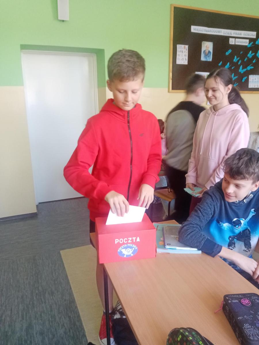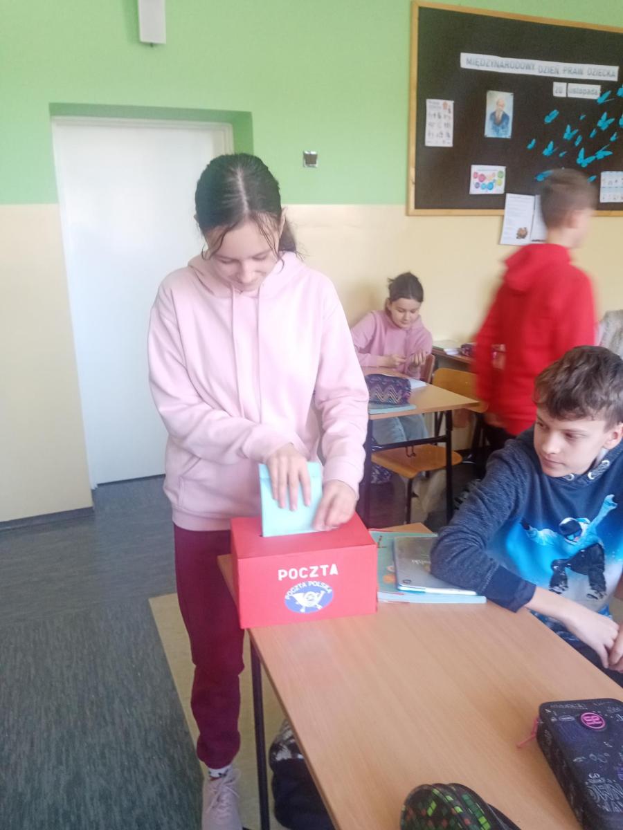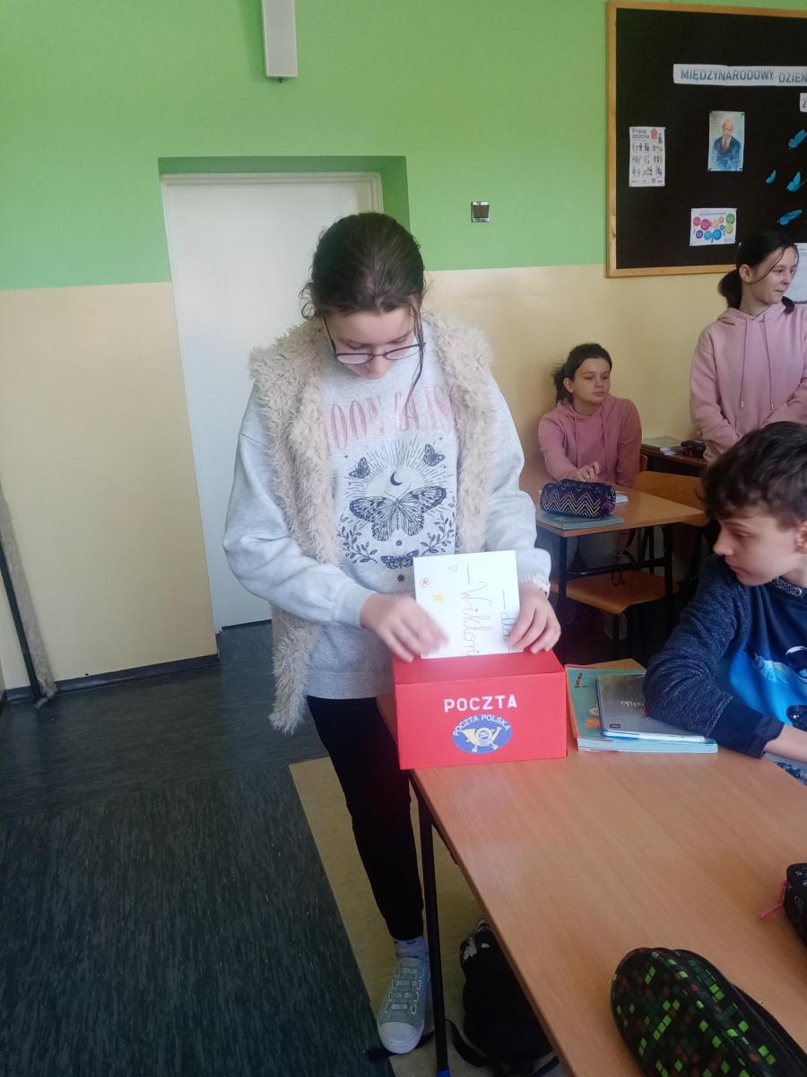 W ramach realizowanej w roku szkolnym 2023/2024 innowacji pt „Czytam, rozumiem, tworzę” uczniowie klasy VII uczyli się redagować list. Spontanicznie zrodził się pomysł, aby korespondencja została skierowana do realnych odbiorców i tak zaistniała wymiana listów pomiędzy uczniami naszej szkoły i ich rówieśnikami z Ośrodka Szkolno-Wychowawczego w Złotej. Pięknie ozdobione listy, a nawet własnoręcznie wykonane koperty trafiły do adresatów. Niecierpliwie czekamy na odpowiedzi.