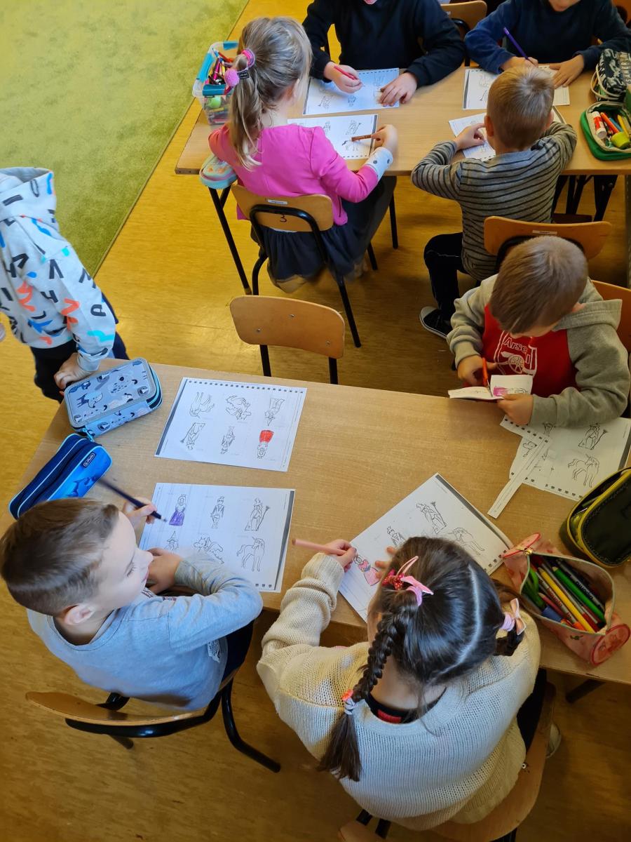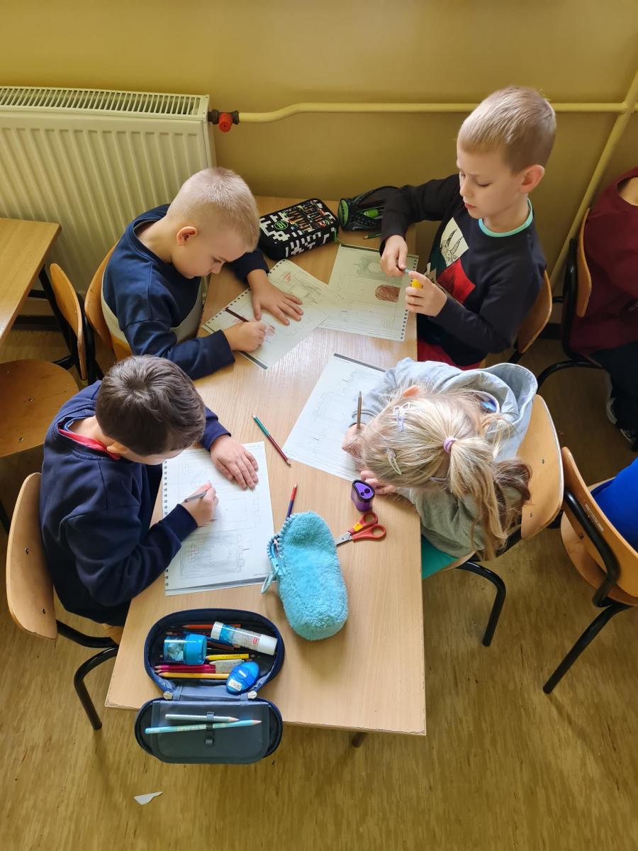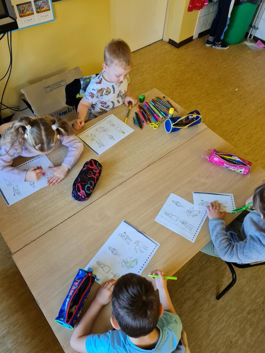 z oddziału sześciolatków na kółku języka angielskiego uczyły się nazwać bohaterów bajek po angielsku oraz wzięły udział w zabawie plastycznej – stworzyły zamek. Na pamiątkę bajkowego dnia przedszkolaki zabrały ze sobą małe dyplomiki, przypominające jak ważna jest pamięć o magii płynącej z bajek.
