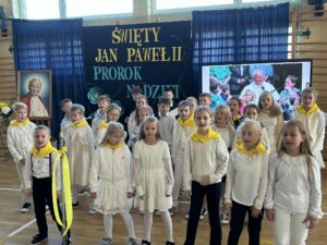 Dzień Papieski stał się dla nas nie tylko okazją do wspomnienia wielkiego Polaka, ale także inspiracją do podejmowania codziennych wyzwań z odwagą i miłością, tak jak uczył nas św. Jan Paweł II. Wspólne śpiewanie i muzyka połączyły nas w pięknym hołdzie, który rozbrzmiewał w sercach uczniów, nauczycieli i wszystkich obecnych.
