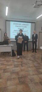 W ramach konkursu odbyła się również prelekcja poświęcona turystyce lokalnej. Pan Jan Czaja z zarządu Tarnowskiej Organizacji Turystycznej przedstawił działalność i zadania realizowane przez Lokalną Organizację Turystyczną. Następnie pan Paweł Kubik z Towarzystwa Miłośników Ziemi Zakliczyńskiej zaprezentował najciekawsze atrakcje kulturowe i historyczne naszego regionu. Prelekcje stanowiły wspaniałe uzupełnienie konkursu, poszerzając wiedzę uczestników o naszym pięknym regionie.