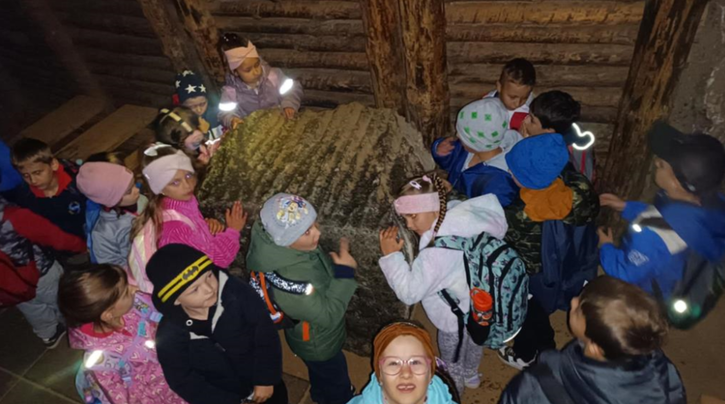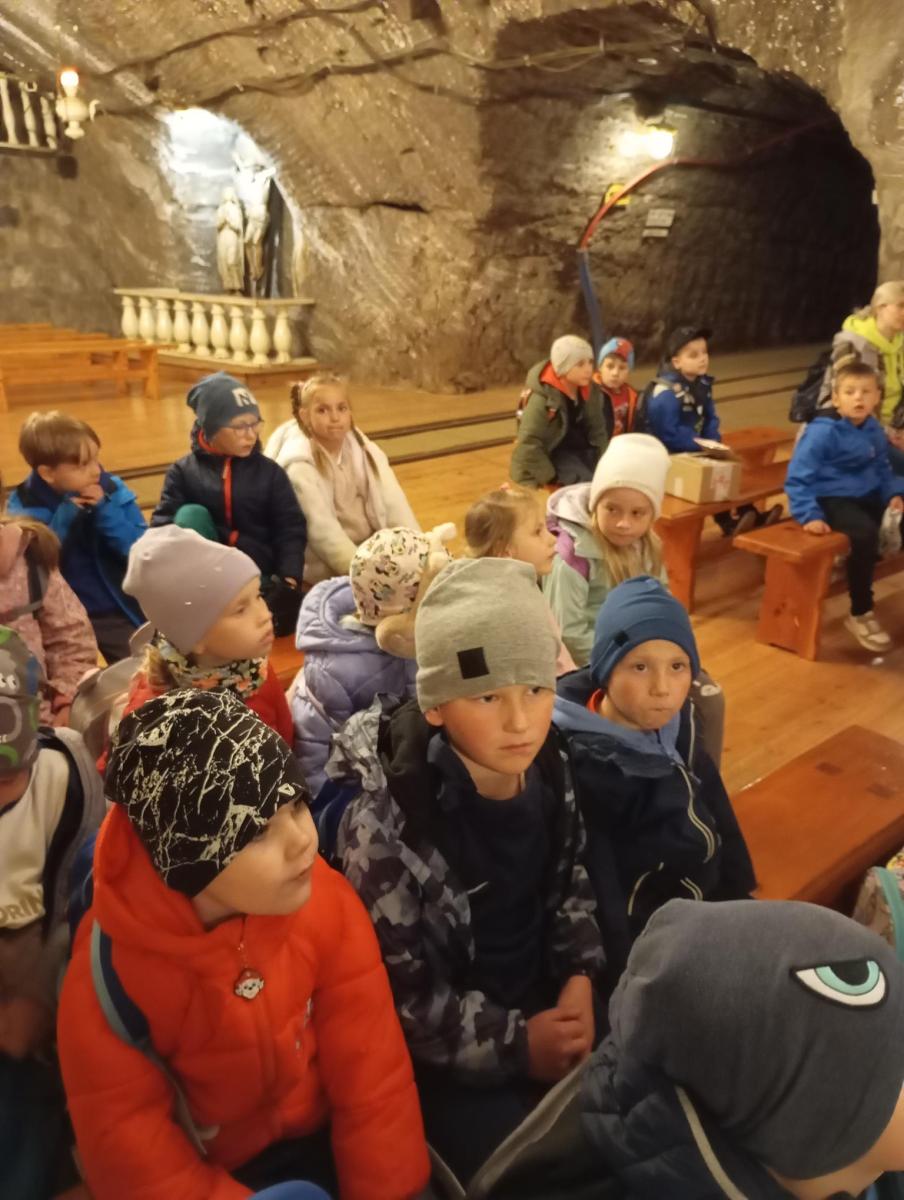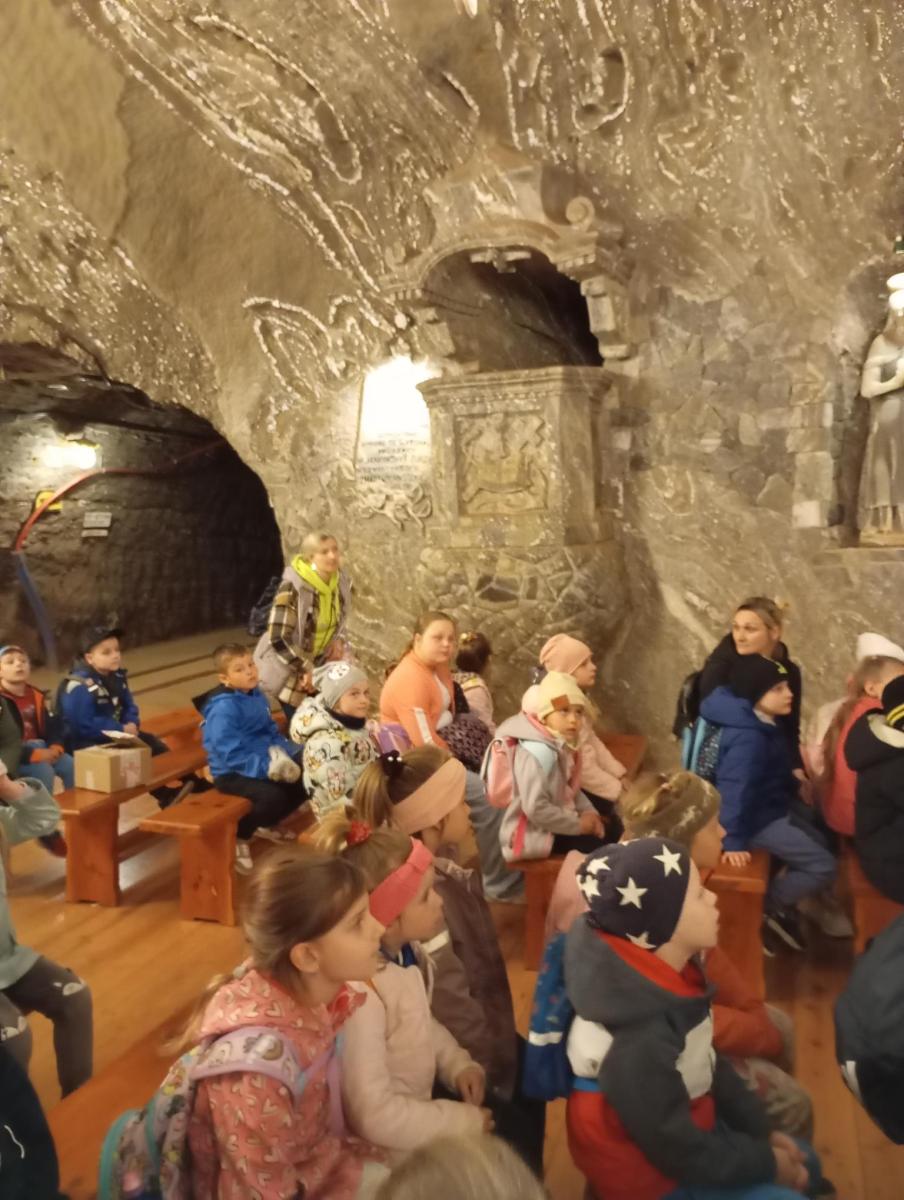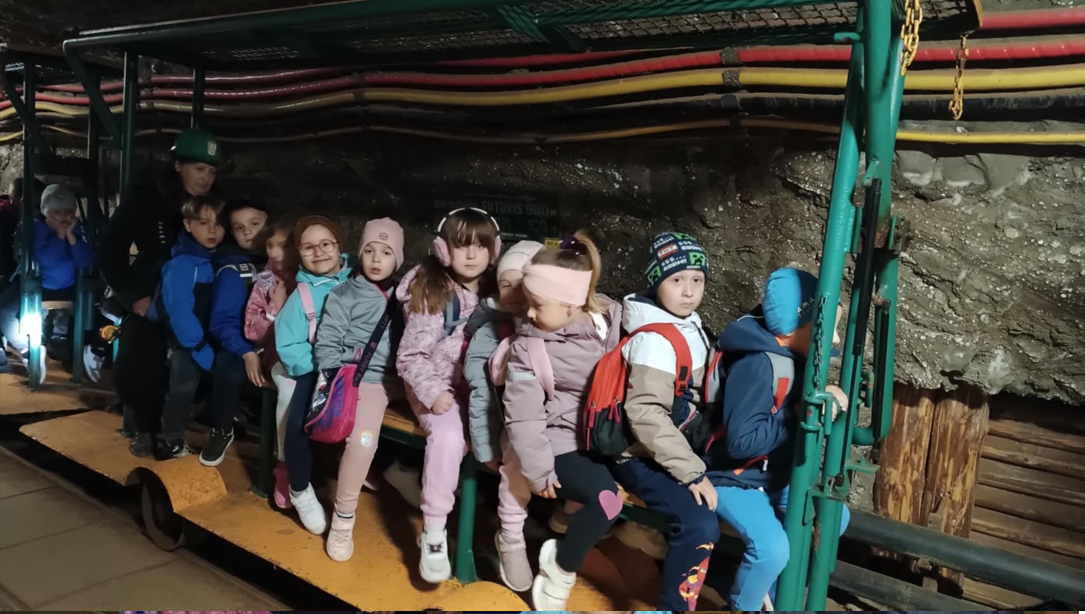We wtorek 13 maja, dzieci z grup przedszkolnych 5 i 6-latków uczestniczyły w wycieczce do jednej z najstarszych kopalni soli w Europie – kopalni soli w Bochni. Już od rana wszystkim dopisywał doskonały humor i ogromna ciekawość co czeka na nich głęboko pod ziemią. Po przyjeździe na miejsce na małych turystów czekała pani przewodnik która opowiedziała krótko o historii kopalni. Dużą atrakcją był zjazd specjalną windą pod ziemię który wzbudził dużo emocji i okrzyków radości. Nie zabrałko przejazdu podziemną kolejką przez kręte korytarze solne. Dzieci mogły zobaczyć dawne narzędzia górnicze, postacie i scenki z życia dawnych górników. Po zwiedzaniu przedszkolaki miały czas na odpoczynek w strefie rekreacyjnej gdzie mogły zjeść posiłek i pobawić się. Wycieczka była nie tylko świetną lekcją historii ale też doskonałą okazją do wspólnej zabawy i integracji. Każde dziecko otrzymało pamiątki w postaci woreczków z kryształkami soli, które będą im przypominać o tej niezwykłej przygodzie.