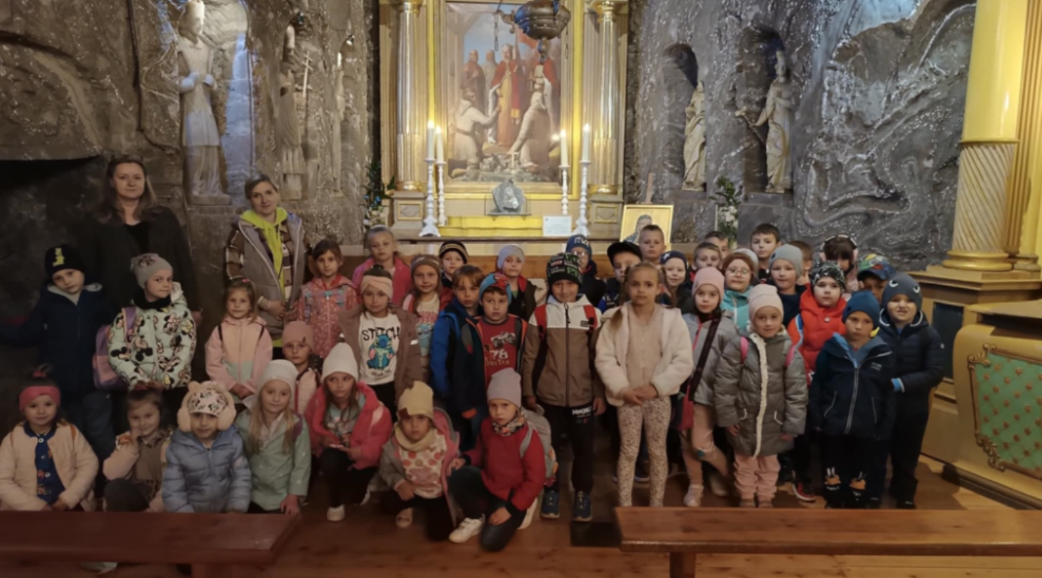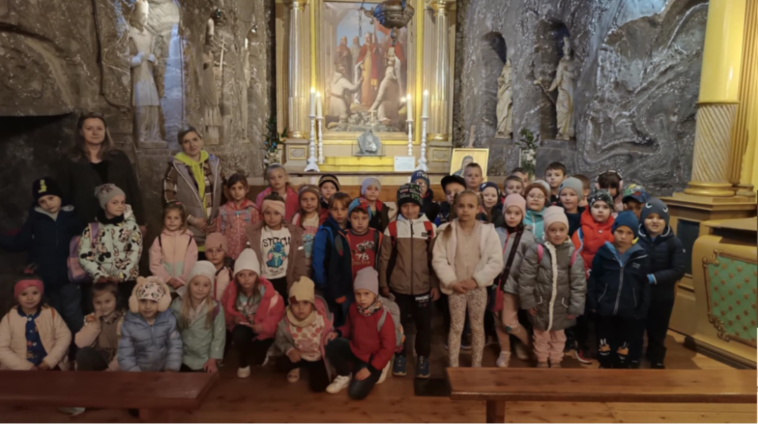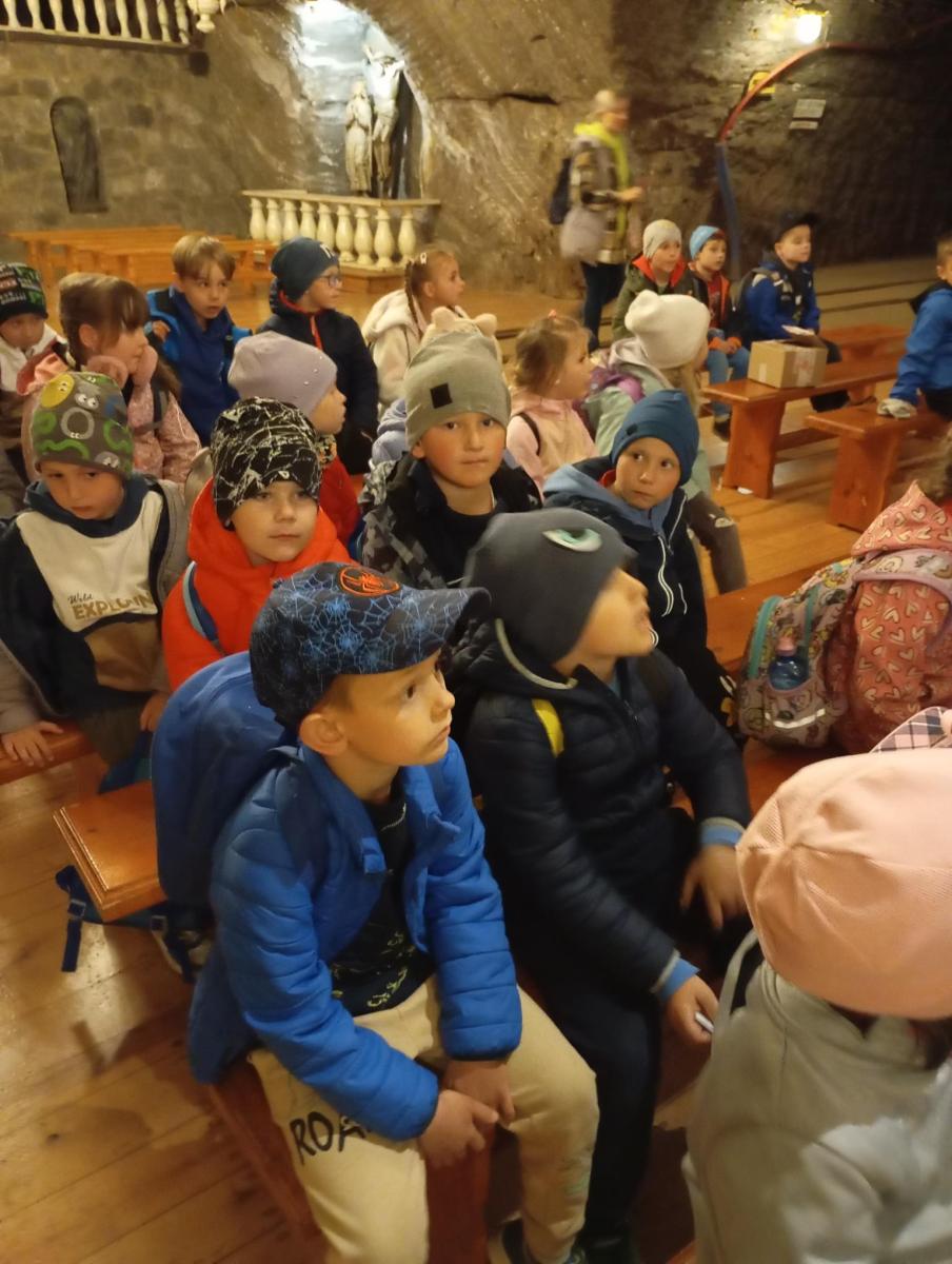 We wtorek 13 maja, dzieci z grup przedszkolnych 5 i 6-latków uczestniczyły w wycieczce do jednej z najstarszych kopalni soli w Europie – kopalni soli w Bochni. Już od rana wszystkim dopisywał doskonały humor i ogromna ciekawość co czeka na nich głęboko pod ziemią. Po przyjeździe na miejsce na małych turystów czekała pani przewodnik która opowiedziała krótko o historii kopalni. Dużą atrakcją był zjazd specjalną windą pod ziemię który wzbudził dużo emocji i okrzyków radości. Nie zabrałko przejazdu podziemną kolejką przez kręte korytarze solne. Dzieci mogły zobaczyć dawne narzędzia górnicze, postacie i scenki z życia dawnych górników. Po zwiedzaniu przedszkolaki miały czas na odpoczynek w strefie rekreacyjnej gdzie mogły zjeść posiłek i pobawić się. Wycieczka była nie tylko świetną lekcją historii ale też doskonałą okazją do wspólnej zabawy i integracji. Każde dziecko otrzymało pamiątki w postaci woreczków z kryształkami soli, które będą im przypominać o tej niezwykłej przygodzie.