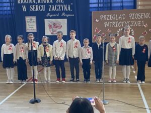 Uczniowie, przygotowani przez swoich nauczycieli, zaprezentowali różnorodne utwory, które wzruszały i inspirowały publiczność. Występy były pełne energii, a młodzi artyści z radością śpiewali znane pieśni, takie jak „Pierwsza brygada”, „Ułani, ułani”, „Szara piechota” oraz inne popularne utwory patriotyczne. Publiczność aktywnie dopingowała swoich ulubieńców, co stworzyło wspaniałą, radosną atmosferę.