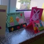Przechadzając się po jednym ze szkolnych korytarzy można podziwiać kartki wielkanocne przegotowane przez uczniów w ramach szkolnego konkursu przedświątecznego. Już sama ilość zgłoszonych prac (83 kartki) robi wrażenie. Należy podkreślić, że jury miało nie lada problem. Wyniki konkursu poznamy podczas apelu przedświątecznego. Następnie kartki trafią do podopiecznych hospicjum w Brzesku, z którym współpracuje nasza szkoła.