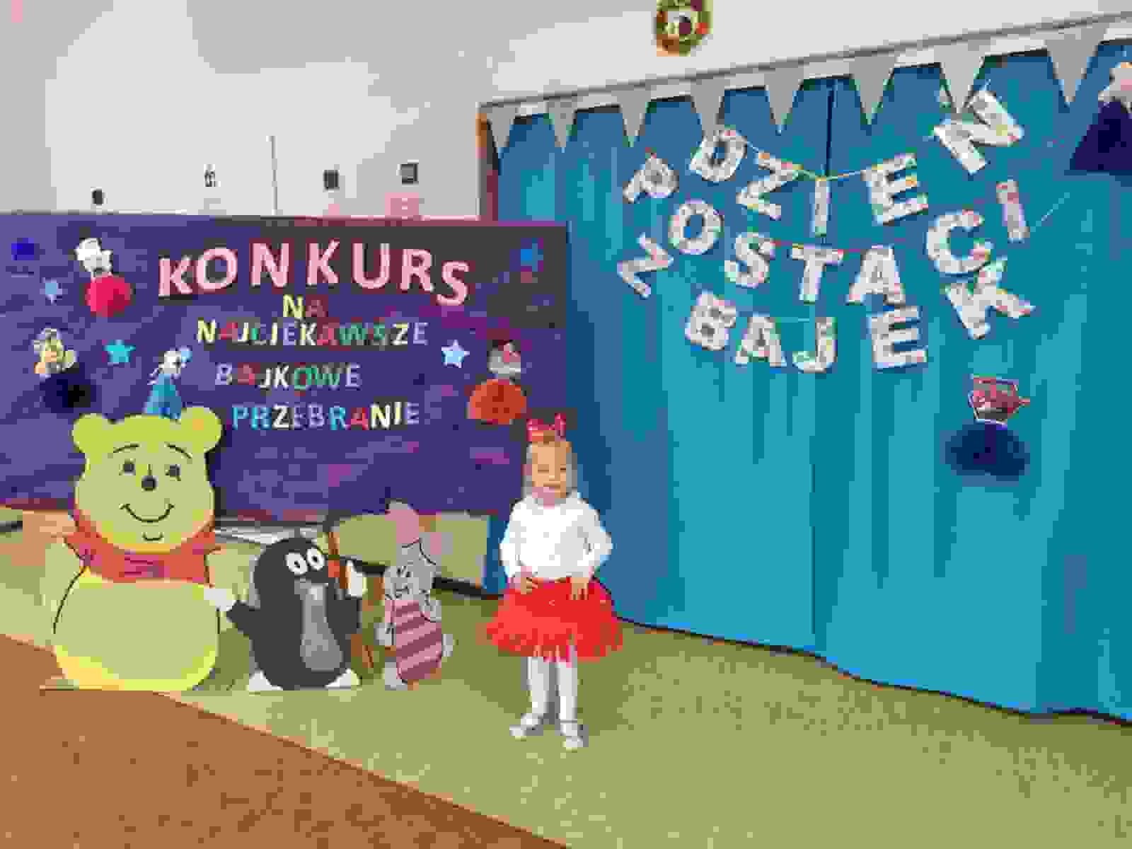14 listopada w naszym przedszkolu odbył się konkurs w ramach Międzynarodowego Dnia Postaci z Bajek. W tym dniu przedszkole wypełniło się wieloma bajkowymi postaciami. Przedszkolaki prezentowały swoje przebrania konkursowe. Komisja konkursowa oceniała zgodność z tematem, pomysłowość, oryginalność, pracochłonność, estetyka, preferowane wykonanie własnoręczne z materiałów ogólnie dostępnych.