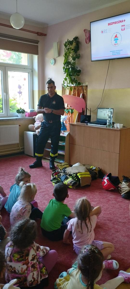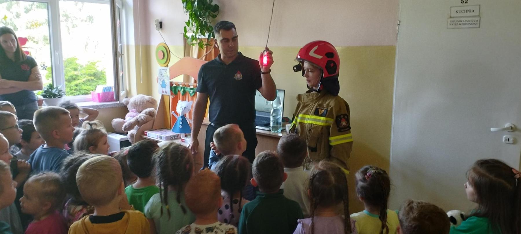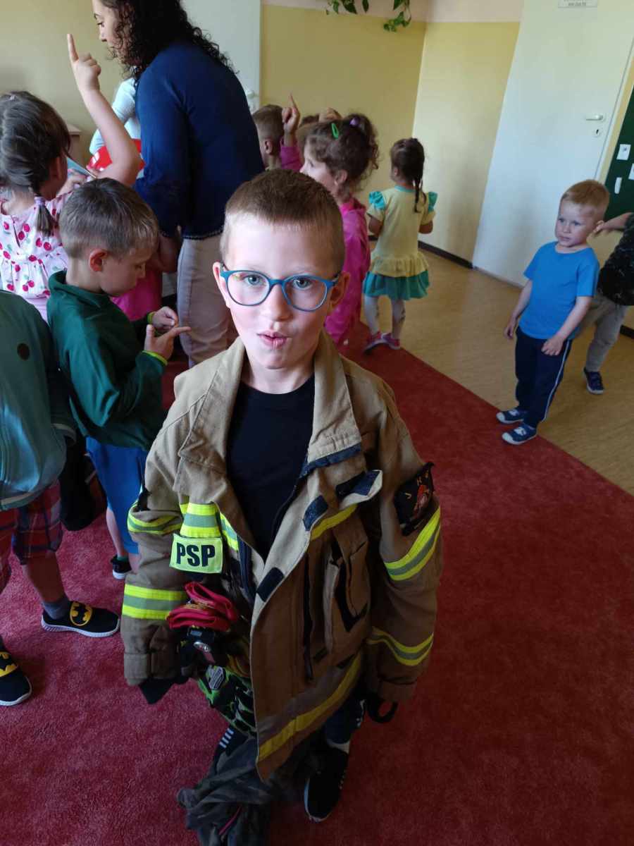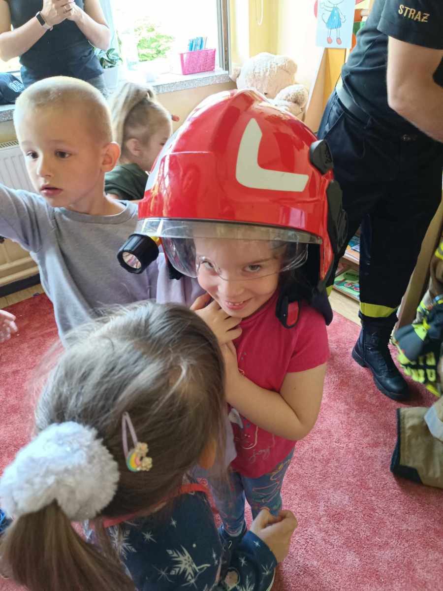 Pod koniec maja w naszym przedszkolu mieliśmy niezwykłych gości: Przedstawicieli Ochotniczej Straży Pożarnej . Wizyta strażaków wzbudziła ogromne zainteresowanie wszystkich dzieci. Jednak największym powodzeniem cieszył się zaprezentowany naszym przedszkolakom specjalny ubiór . Dzieci aktywnie uczestniczyły w spotkaniu. Uważnie słuchały o niebezpiecznej pracy strażaka i chętnie odpowiadały na zadawane pytania.