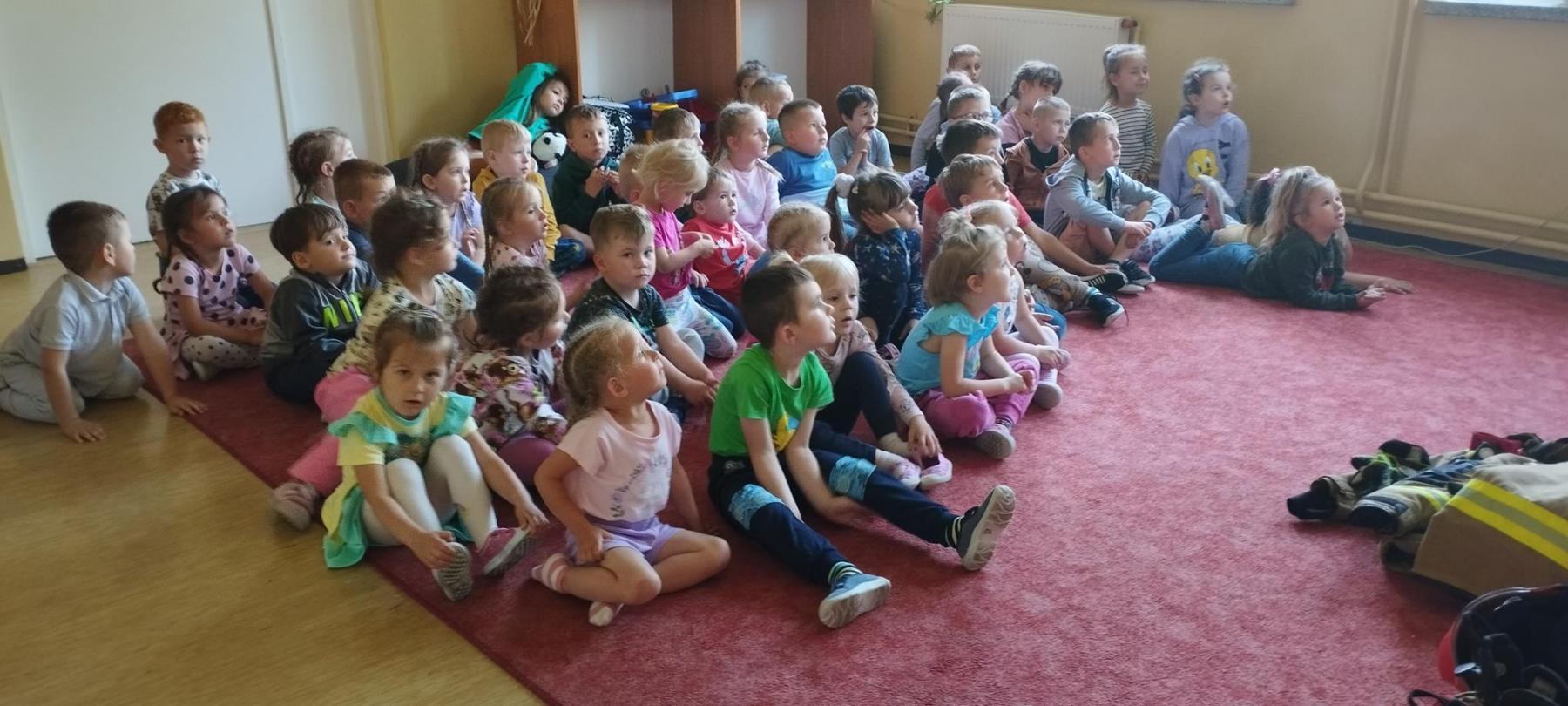 Przedszkolaki dowiedziały się w jakich okolicznościach można wzywać straż pożarną, że strażacy nie tylko gaszą pożary, ale również są wzywani do wypadków samochodowych.