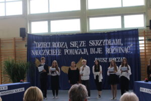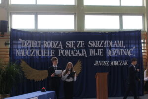 Uroczystość rozpoczęła się od przemówień Pani Dyrektor Agnieszki Pomikło oraz Przewodniczącej Rady Rodziców – Pani Ewy Gierałt, które złożyły serdeczne życzenia i wyrazy wdzięczności pod adresem pedagogów. Podkreśliły ogromny wkład nauczycieli w kształtowanie młodych pokoleń oraz ich nieoceniony wpływ na rozwój intelektualny i społeczny uczniów. Akademia obfitowała w pełne emocji występy uczniów. Mogliśmy posłuchać recytacji wzruszających wierszy, wysłuchać pięknych piosenek oraz wysłuchać przemyśleń przedstawiciela grona pedagogicznego i rodziców.