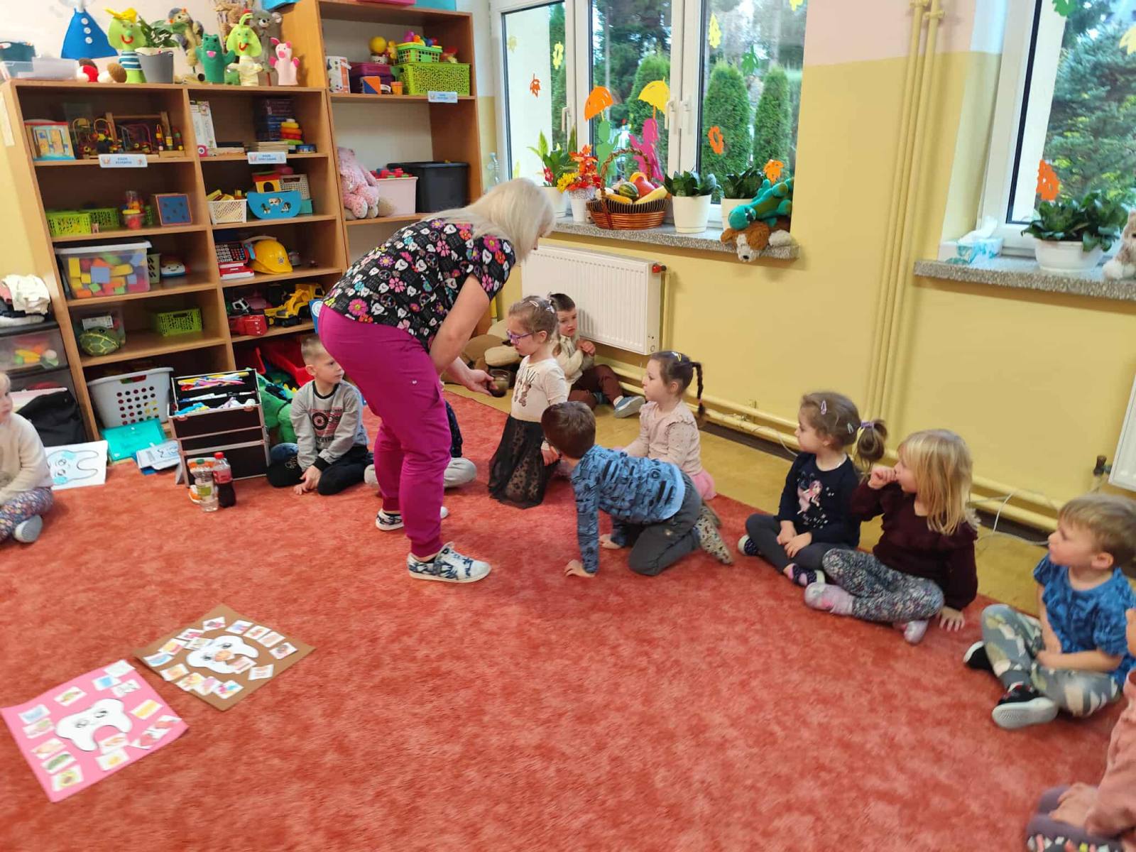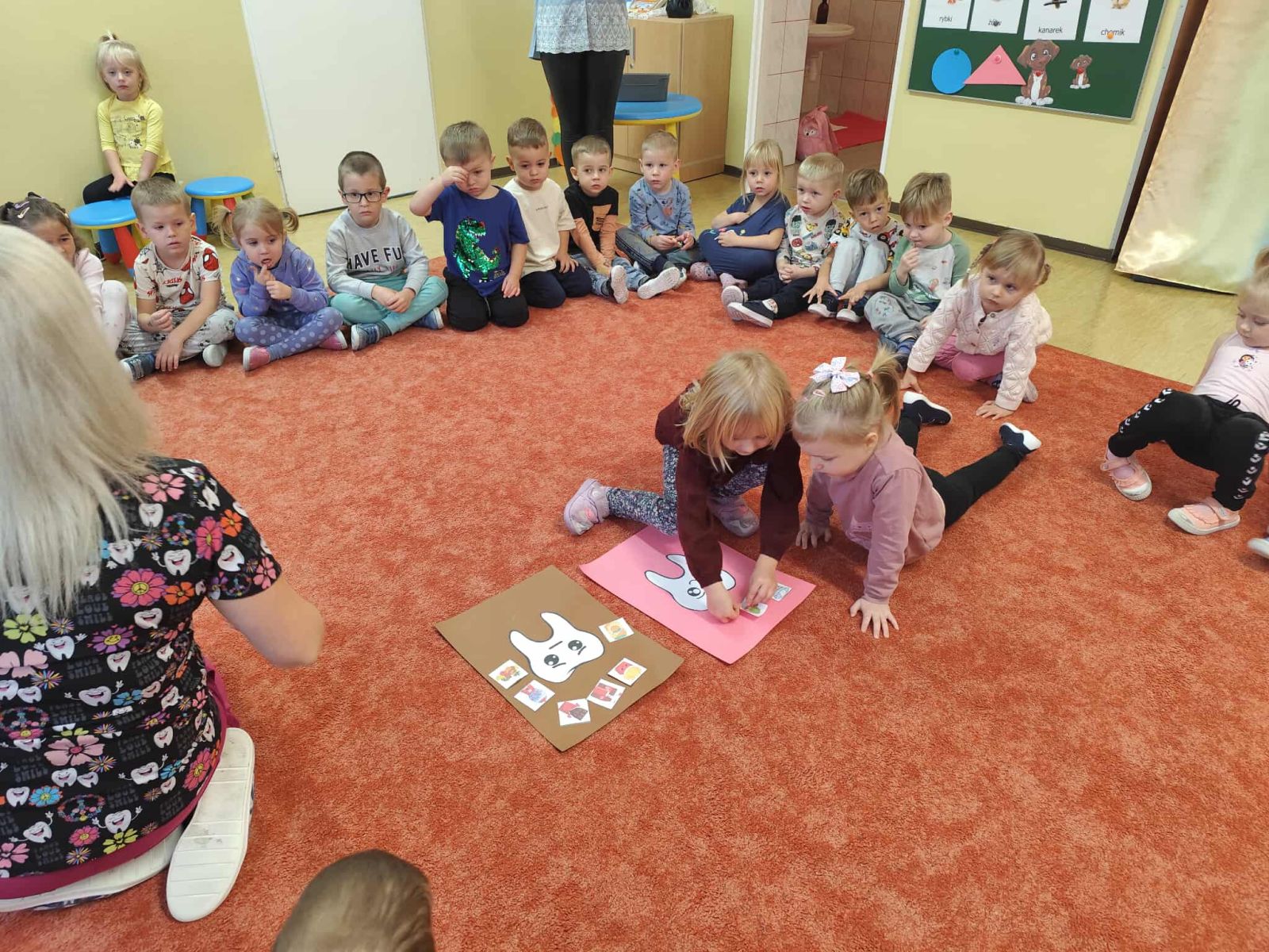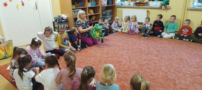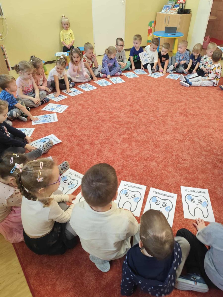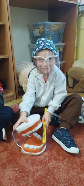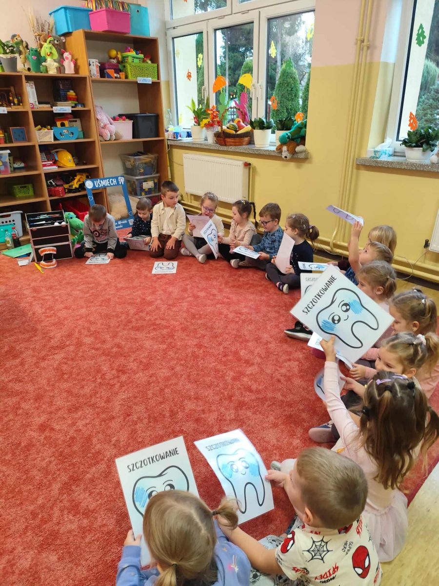 i zaprosiliśmy samą Wróżkę Zębuszkę na spotkanie z przedszkolakami. Pokazała dzieciom jak prawidłowo dbać o higienę jamy ustnej oraz technikę mycua zębów. Zwróciła też uwagę na prawidłowe nawyki żywieniowe. Dzieci miały okazję pooglądać różne narzędzia stomatologiczne i dowiedzieć się co nieco o pracy dentysty.